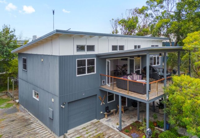 Sliding doors open to a large entertaining deck, capturing sea breezes and offering seamless indoor–outdoor flow.